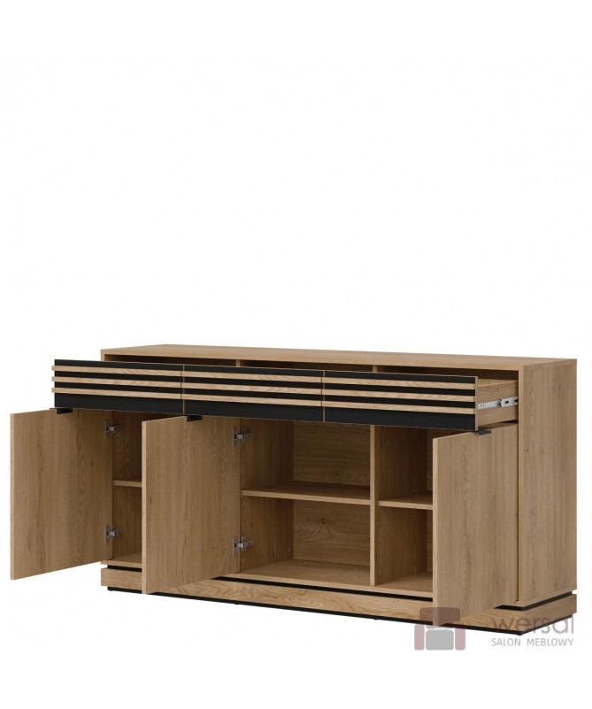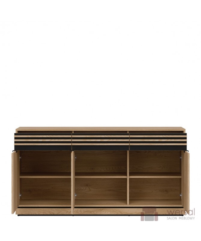 Wykonanie: Korpusy i fronty zostały wykonane z wysokiej jakości płyty meblowej laminowanej. Lamele płyta meblowa MDF. System cichego domyku drzwi w standardzie. Wysokiej jakości prowadnice GTV szuflady z pełnym wysuwem. Uchwyty aluminiowe w kolorze czarnym