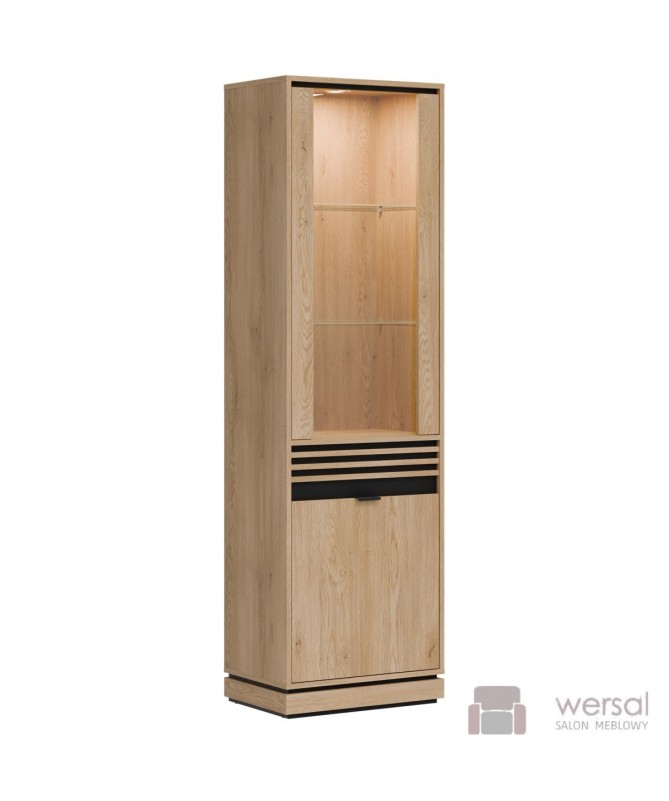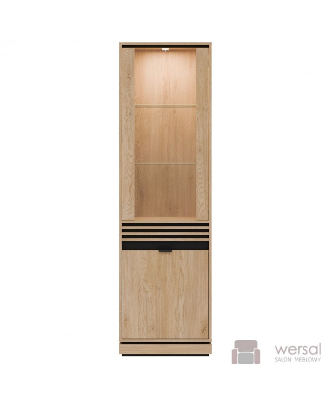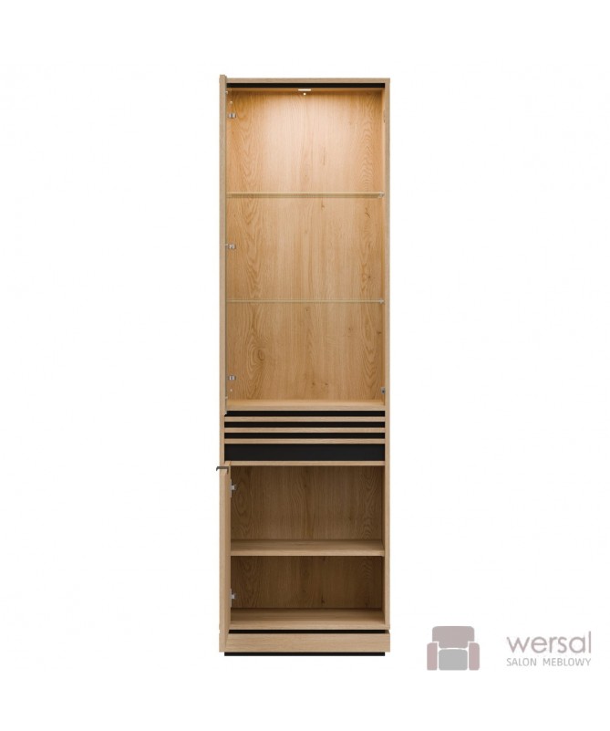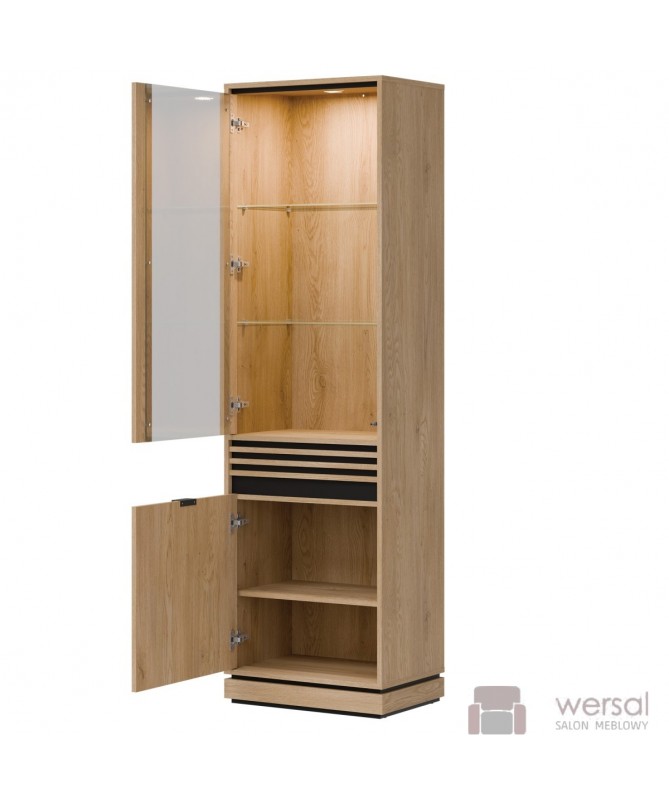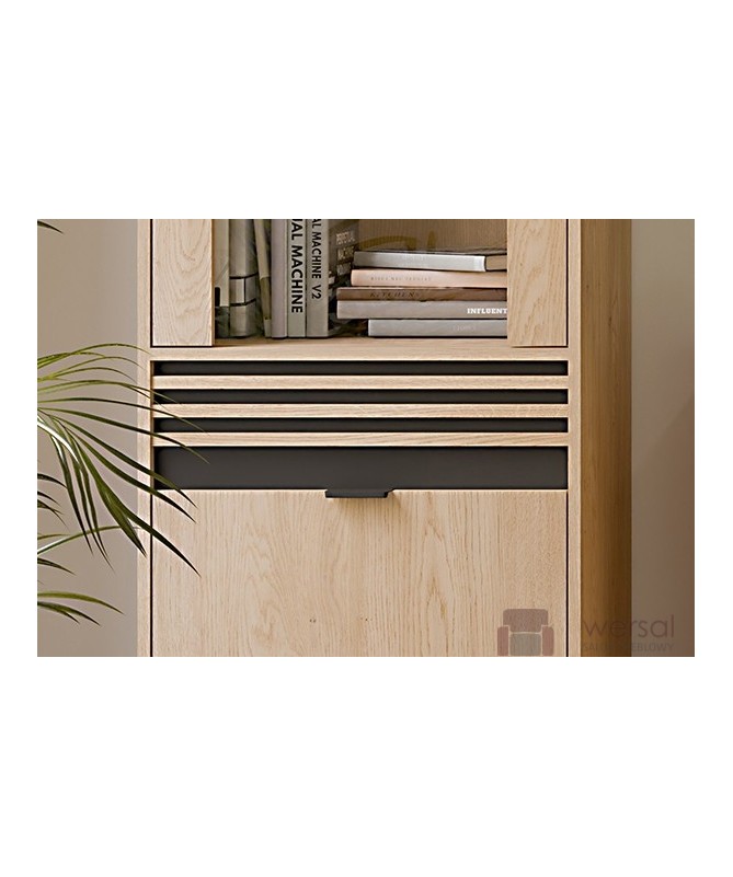 Wykonanie: Korpusy i fronty zostały wykonane z wysokiej jakości płyty meblowej laminowanej. Lamele płyta meblowa MDF. System cichego domyku drzwi w standardzie. Wysokiej jakości prowadnice GTV szuflady z pełnym wysuwem. Uchwyty aluminiowe w kolorze czarnym. Hartowane szkło szyby frontowej