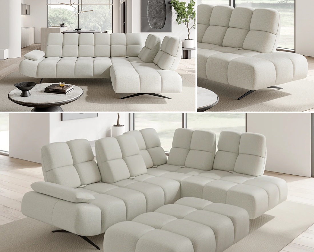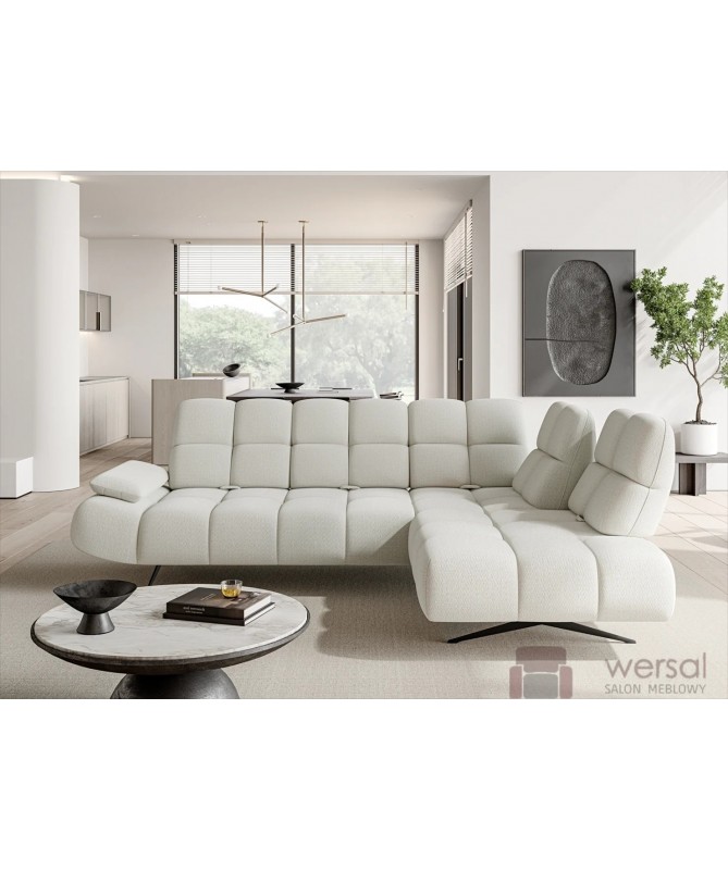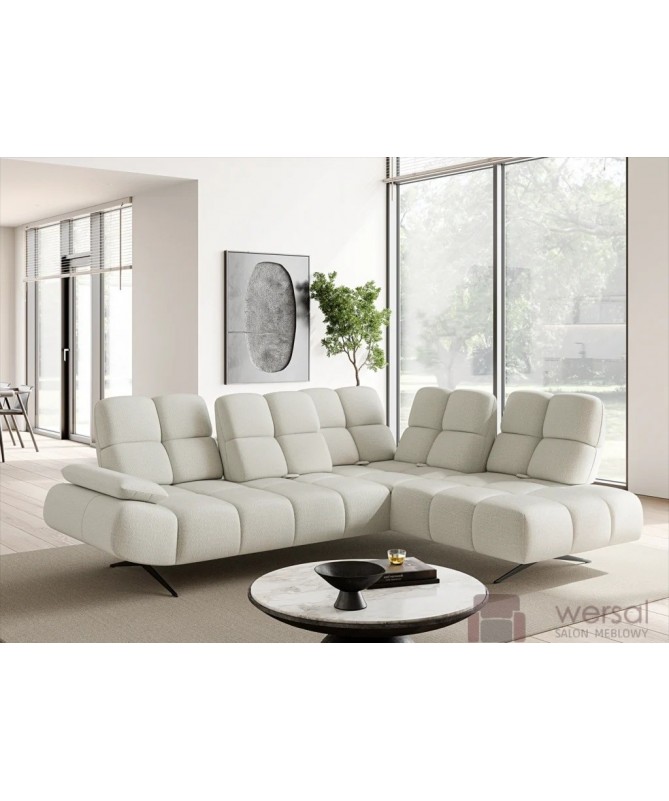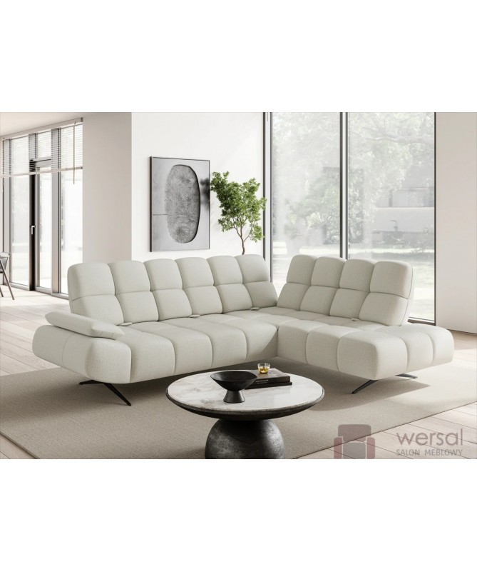 Cechy charakterystyczne: Narożnik na sprężynach falistych oraz piance. Posiada regulowane opracie, możliwość zamówienia strony lewej oraz prawej.