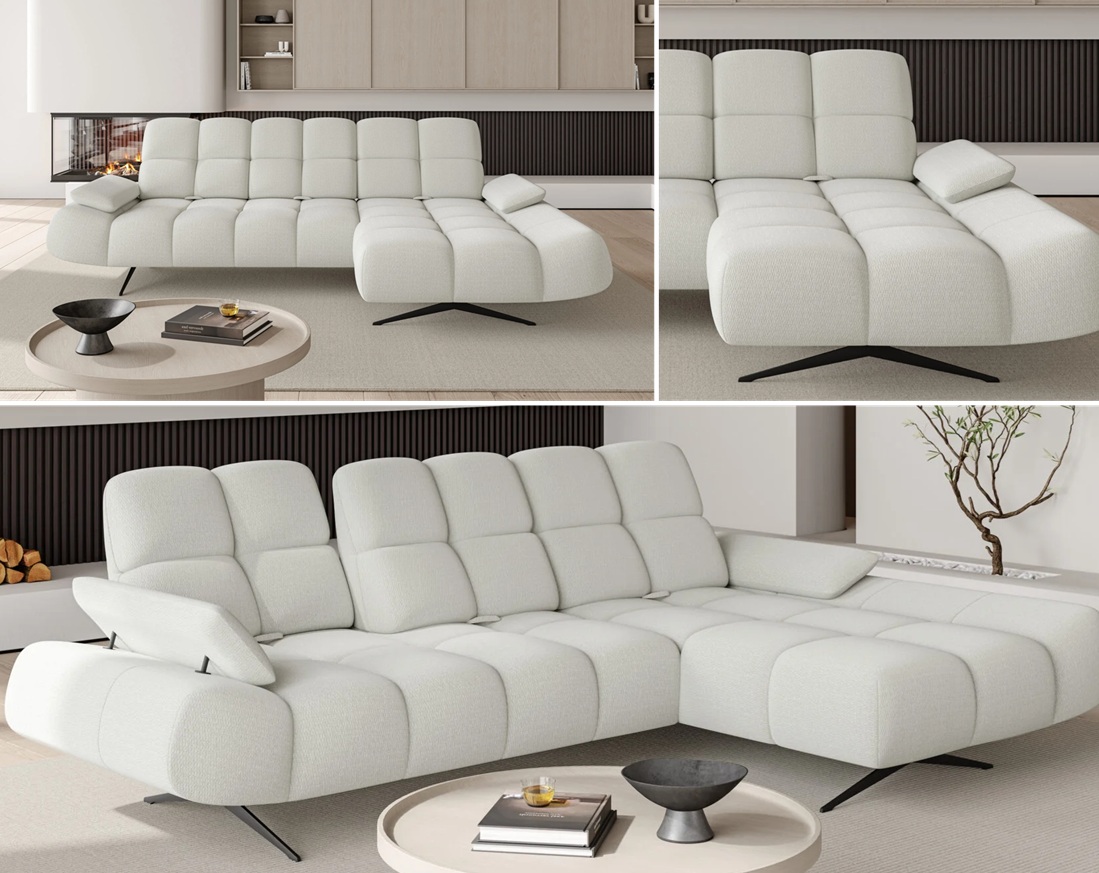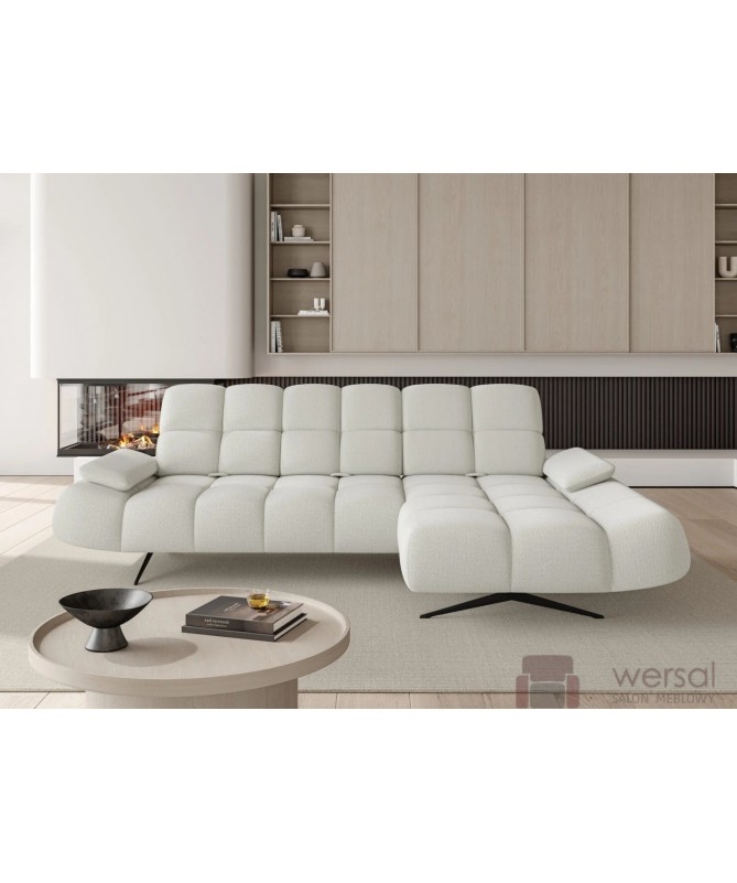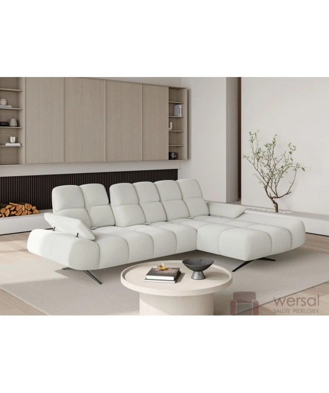 Cechy charakterystyczne: Narożnik na sprężynach falistych oraz piance. Posiada regulowane opracie, możliwość zamówienia strony lewej oraz prawej.