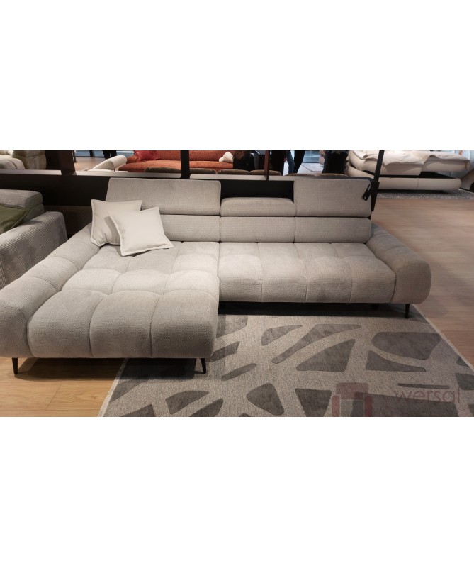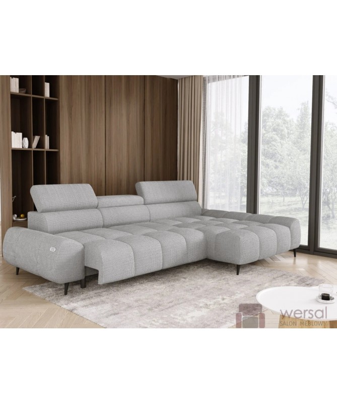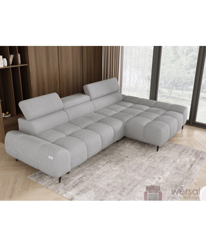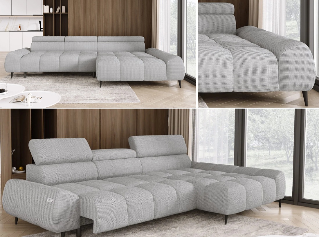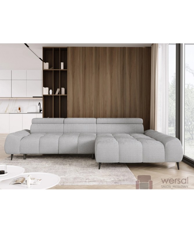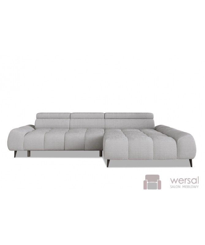 Cechy charakterystyczne: Narożnik na sprężynach falistych oraz piance. Posiada regulowane zagłówki. Bez funkcji spania, możliwość zamówienia strony lewej oraz prawej.