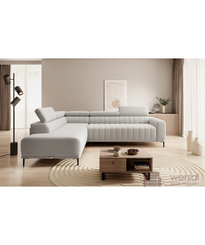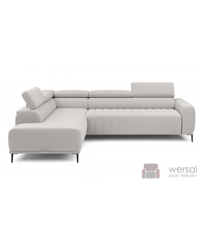Gustowny i wygodny narożnik GANDI producenta mebli tapicerowanych Wersal to znakomite uzupełnienie salonów utrzymanych w nowoczesnym lub loftowym stylu. Na jego atrakcyjną stylistykę składa się regularna bryła o zaokrąglonych obrzeżach, podtrzymywana na wysokich, czarnych nóżkach nadających jej smukłości, a ponadto subtelne, eleganckie przeszycia na siedzisku, oparciu oraz boku narożnika. Doskonałe połączenie tych wszystkich elementów pozwoliło osiągnąć gustowny efekt, czyniąc z narożnika model o wyjątkowo atrakcyjnym wyglądzie! Narożnik GANDI ma jednak do zaoferowania znacznie więcej! Marka Meble Wersal wyposażyła go w szereg funkcjonalności, takich jak funkcję spania typu włoskiego oraz pojemnik na pościel. Oznacza to, że możemy użytkować go jako klasyczną sofę wypoczynkową lub zamienić w wygodne łóżko. Narożniki pokojowe producenta Wersal są dostępne w szerokiej palecie tkanin obiciowych, co zwiększa ich możliwości aranżacyjne. Poza ciekawą kolorystką seria ta oferuje również tkaniny plamoodporne i łatwoczyszczące, dzięki którym narożnik GANDI przez wiele lat pozostanie w nienaruszonym stanie. Zapraszamy do naszego sklepu Meble Wersal - internetowy sklep meblowy. Sprawdź też strony: narożniki modułowe i meble do salonu nowoczesne.