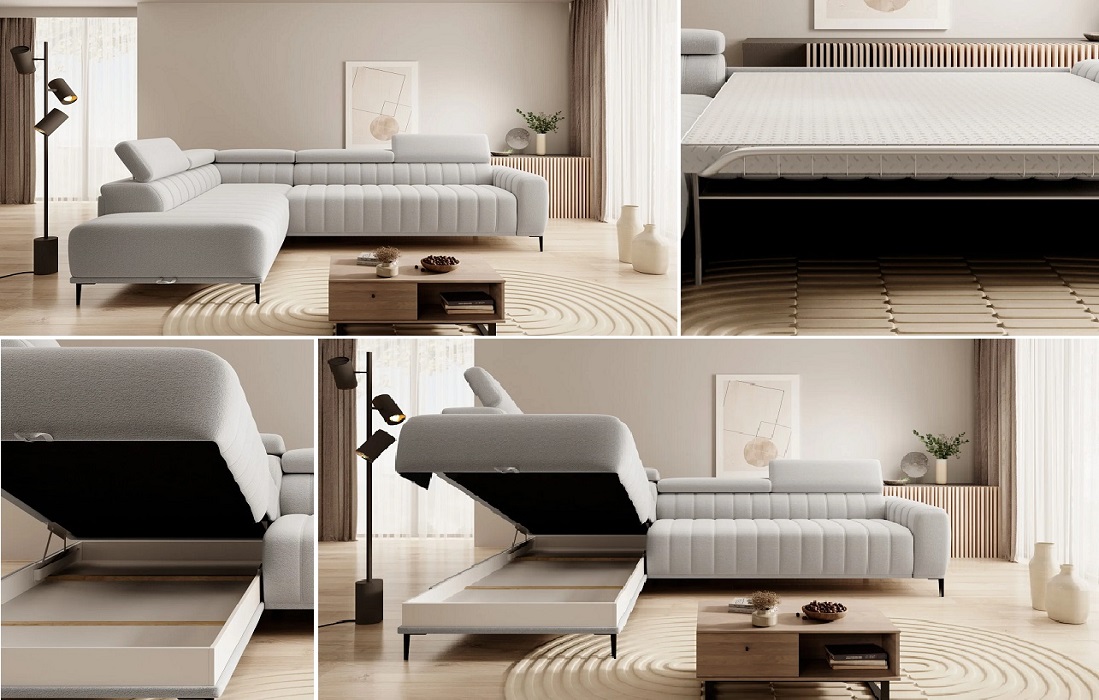 Cechy charakterystyczne: Narożnik na piance. Występuje w wersji prawo oraz lewostronnej, posiada pojemnik na pościel. Trzy szerokości powierzchni spania do wyboru. Materac piankowy o wysokości 14 cm.