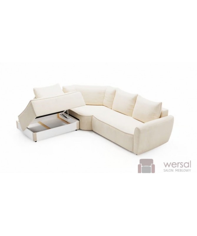 Cechy charakterystyczne: Narożnik na sprężynach bonelowych i falistych, posiada pojemnik na pościel. Możliwość zamówienia strony lewej oraz prawej