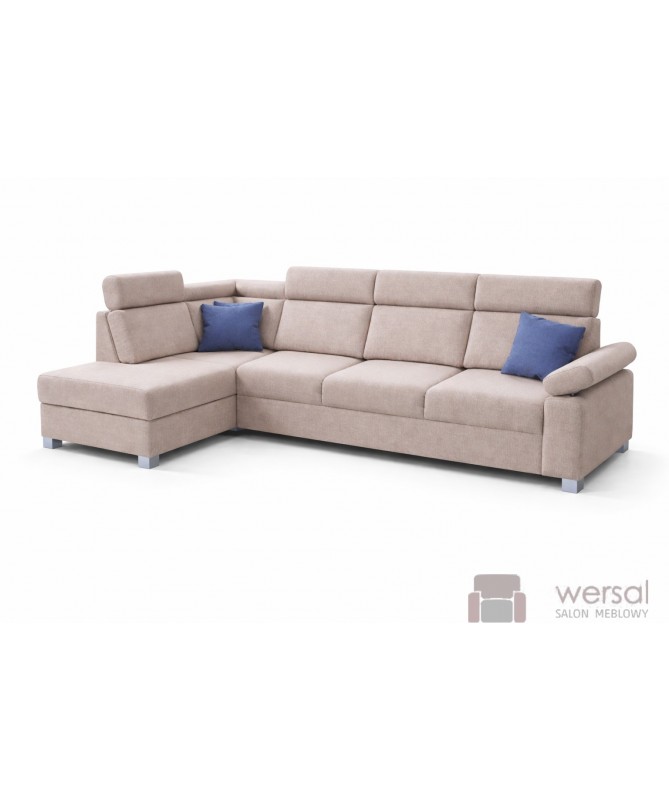 Cechy charakterystyczne: Narożnik z funkcją spania typu "puma". Na sprężynach bonelowych i sprężynach falistych, posiada pojemnik na pościel. Możliwość zamówienia strony lewej oraz prawej.