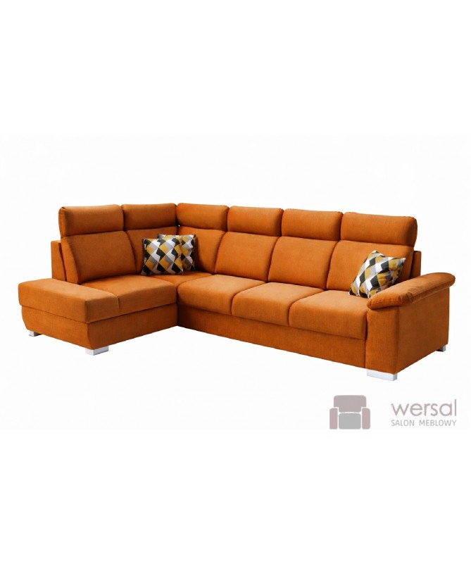 Cechy charakterystyczne: Narożnik z funkcją spania typu "puma". Na sprężynach bonelowych i sprężynach falistych, posiada pojemnik na pościel. Możliwość zamówienia strony lewej oraz prawej.