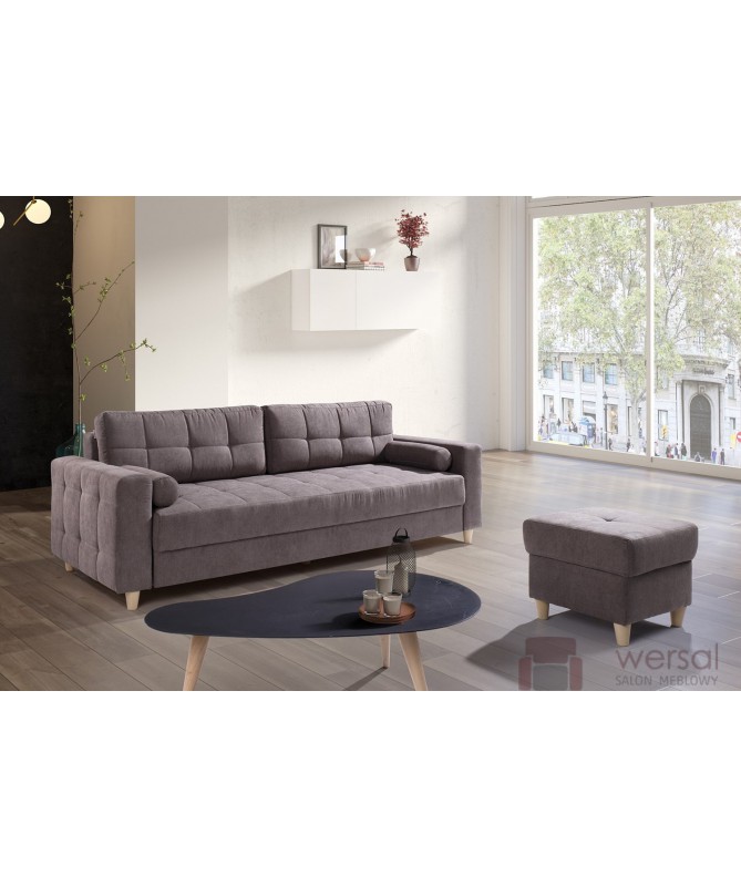 Kanapa SEKKEN producenta Morel Meble to model klasyczny, o prostej i geometrycznej formie oraz minimalistycznej stylistyce. Będzie ona zatem znakomitym uzupełnieniem każdego salonu, bez względu na to, jaki styl w nim dominuje. Na zwiększone możliwości aranżacyjne wpływa ponadto dostępność kanapy w szerokiej palecie tkanin obiciowych ze specjalnej serii Morel Meble. Oferuje ona materiały plamoodporne i łatwoczyszczące, dzięki którym kanapa SEKKEN przez długie lata zachowa swój atrakcyjny wygląd. Jest to model wielofunkcyjny, ponieważ został wyposażony w funkcję spania typu "DL" oraz pakowny pojemnik na pościel, co pozwala użytkować go na dwa sposoby: w pozycji siedzącej jako standardową sofę wypoczynkową, jak i leżącej, po zamienieniu na wygodne łóżko. Kanapę SEKKEN tworzą wytrzymałe sprężyny: bonelowe lub system kieszeniowy do wyboru, listwy sprężynujące oraz najwyższej jakości pianka, dlatego też możemy mieć pewność, że nasz relaks będzie niezwykle efektywny i przyjemny. Meble tapicerowane producenta Morel Meble to funkcjonalne i stylowe uzupełnienie każdego pokoju dziennego. W ofercie naszego internetowego sklepu meblowego są one objęte dwuletnią gwarancją. Serdecznie zapraszamy!